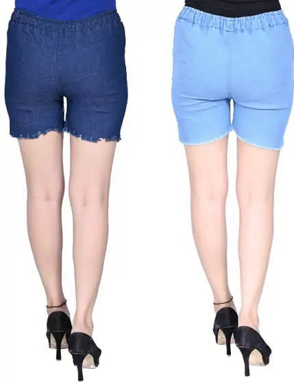 Short For Girls Casual Printed Denim (Blue, Pack of 2)